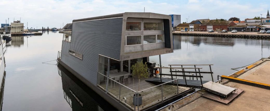 Lige nu ligger husbåden i Nexø Havn, men den kan ifølge sagens natur flyttes andre steder hen. Foto: Danbolig