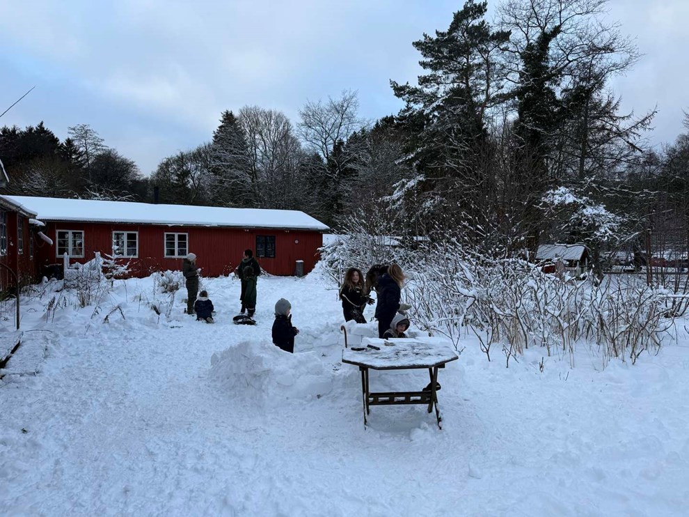 – Drømmen for mig og min mand er fællesskabet og det at leve så bæredygtigt som overhovedet muligt, i respekt for naturen. At leve så selvforsynende som muligt. Og det har vi fundet her. Her er så lækkert herovre, både på Bornholm, men også her internt, her er så dejligt. De store børn går bare ud af døren, så er der legekammerater. Det er sådan et børneliv skal være i min optik.