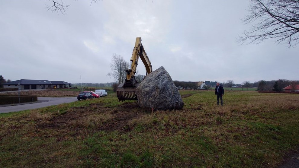 Nu er stenen flyttet. Dog ikke til en af de nævnte steder, men ud til hjørnet af Lindevej og Egevej.