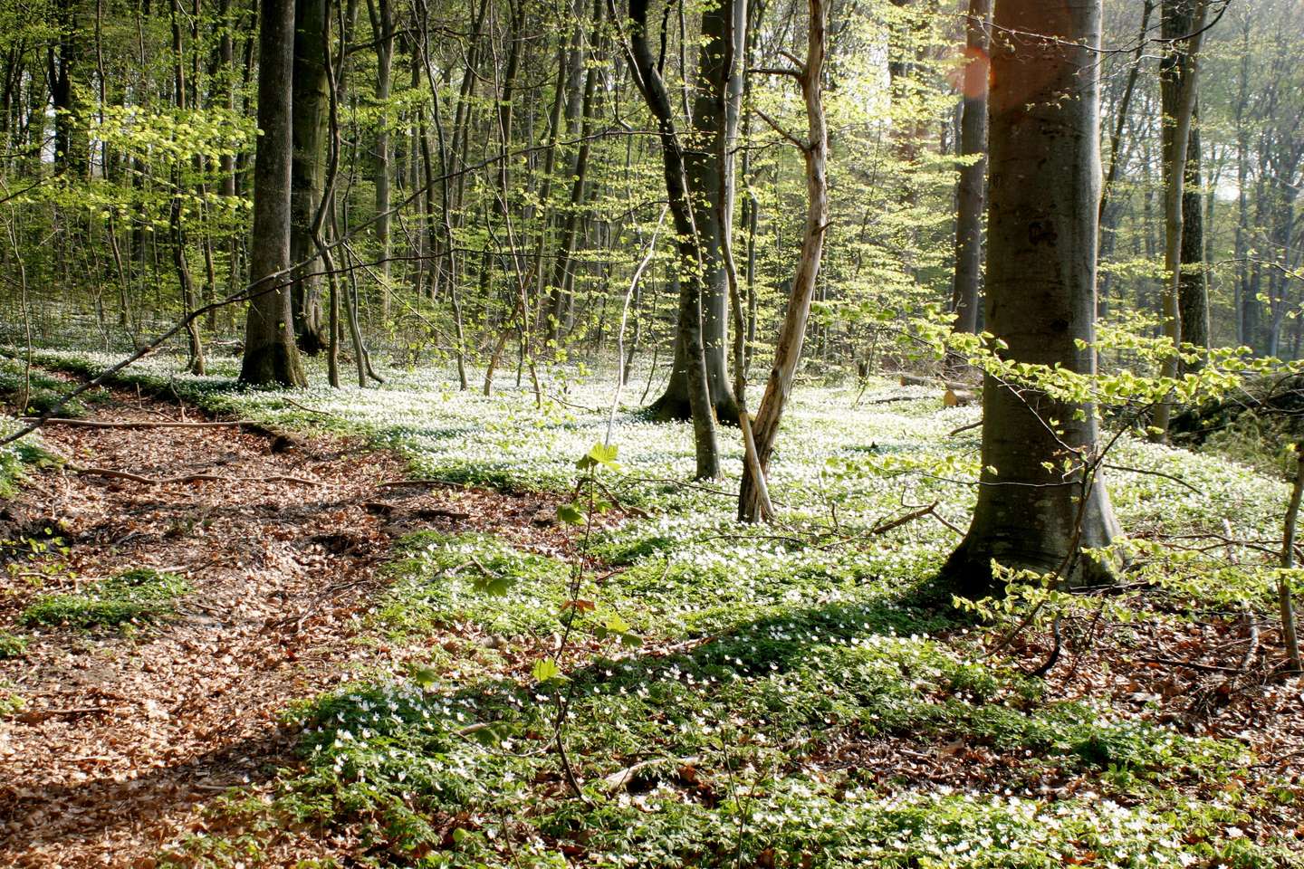Udsprungen bøgeskov og hvide anemoner.