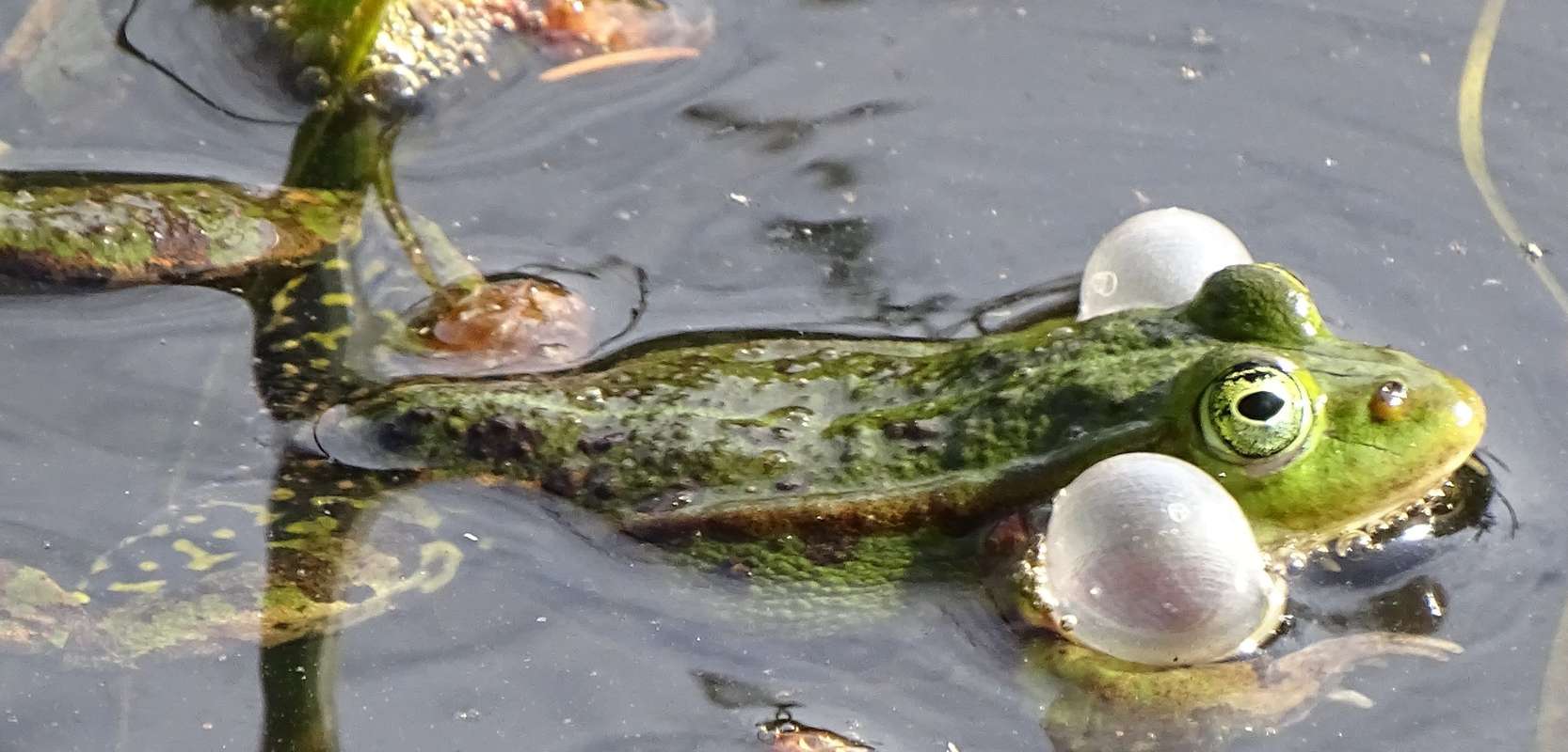Kvækkende grøn frø i mosen Gråmyr ved Gudhjem.