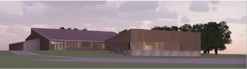 Sådan kommer den nye tilbygning indeholdende varmtvandsbassin og handicapvenlig omklædning til at se ud. Illustration: OJ Ingeniører A/