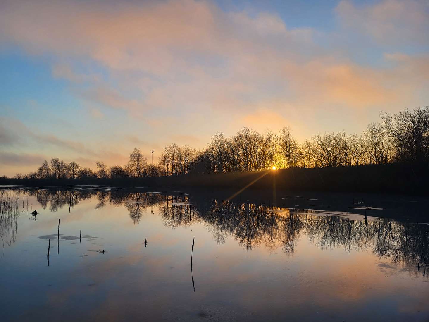 Dagens billede: Endelig lidt opklaring og sol. Her ved søen på Porcelænsvej