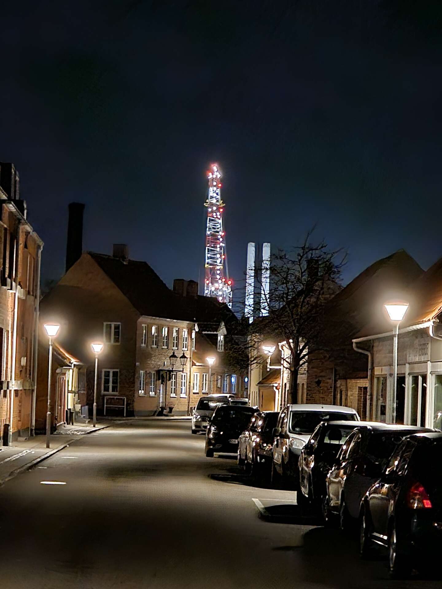 Kranen i Rønne med lys. Foto: Jesper Anker Koefoed...