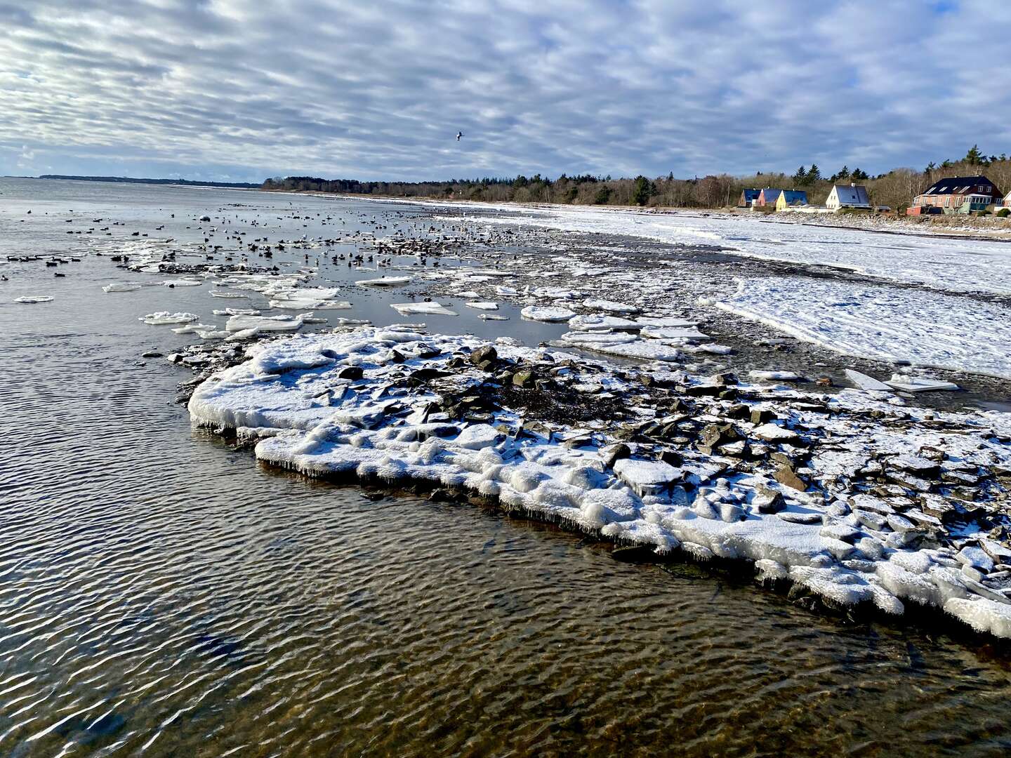 Dagens billede: Vinterbadning på en iskold, men smuk solskinsdag syd for Nexø