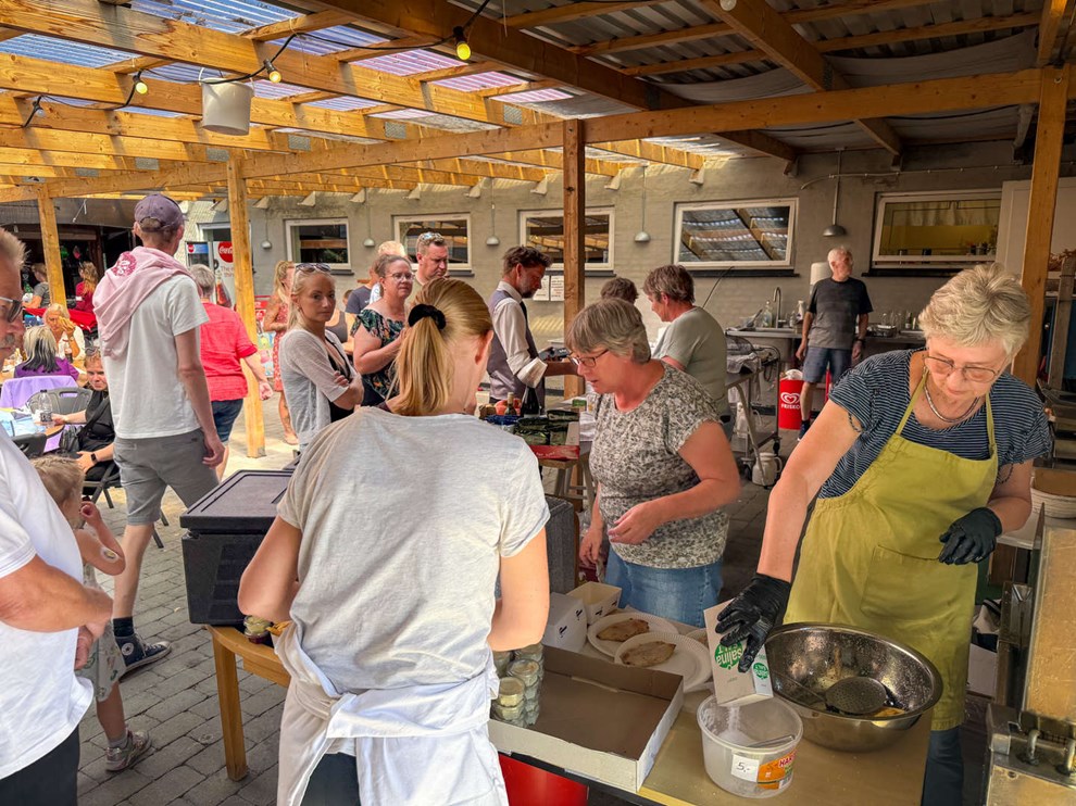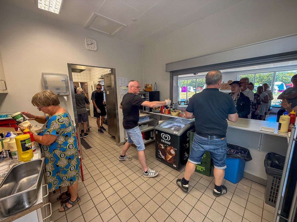 Der er 10 frivillige, som møder op fredag, lørdag og søndag, og de har travlt med at sælge både mad og drikke. Og hundeejerne har - ligesom deres kæledyr - en stor appetit.