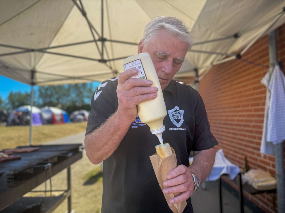 – Desværre, det må blive senere, siger bestyrelsesmedlem i RIK Fodbold, Flemming Bech, inden han tager imod næste ordre.