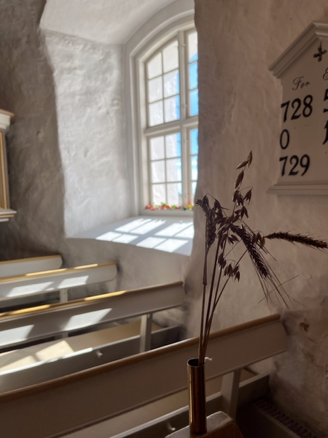 Der har været høstgudstjeneste i Nylars Kirke. Foto: Birgitte Ekstrøm