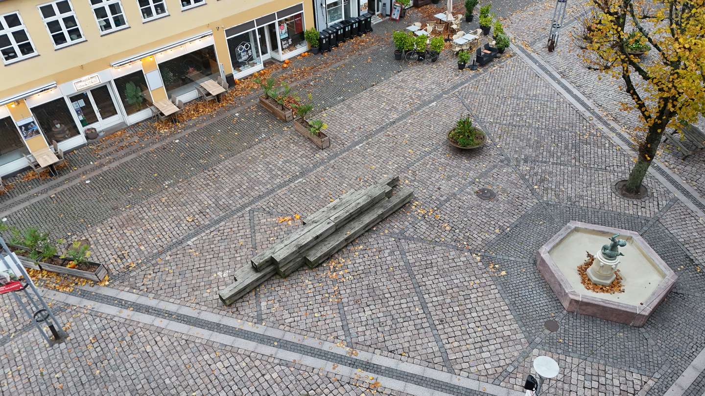 Der var fest, bobler og hornmusik, da bænken på torvet blev indviet i marts 2024, men de helt store forandringer lader stadig vente på sig. Foto: Sarah Thun Kristensen