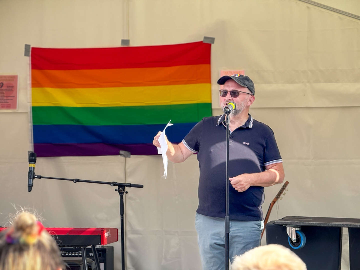 – Jeg ved, at der er mange, som slet ikke ville turde dukke op i dag. Så tak til alle jer, for I gik også for dem der ikke turde det eller ikke magtede det, fortalte Flemming Stougaard, formand for Pride Bornholm, i sin tale på Store Torv.