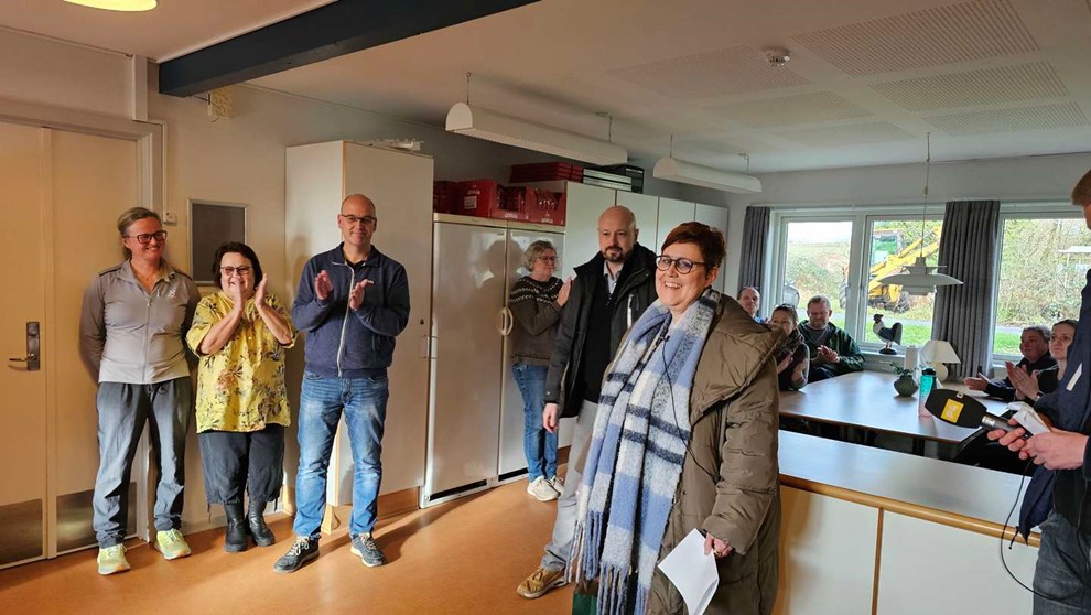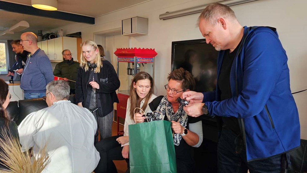 Det kom bag på deltagerne til personalemødet, at det pludselig stod på gaver, og det endda uden en særlig anledning. Men da de hørte, hvad årsagen til det uventede besøg drejede sig om, brød alle ud i klapsalver og væg-til-væg-smil.