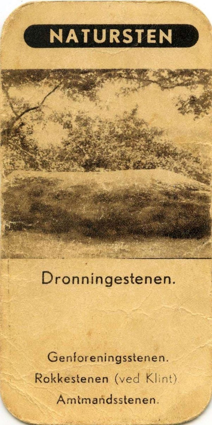 – Jamen, det er jo ganske almindeligt, at man går ned i kilderne. Dronningestenen er afbilledet på et firkort, som er et kortspil, som udkom i 1920. Her kan man se, at det er en klippeblok, og ikke en flad klippe. Og det er det, jeg holder mig til.