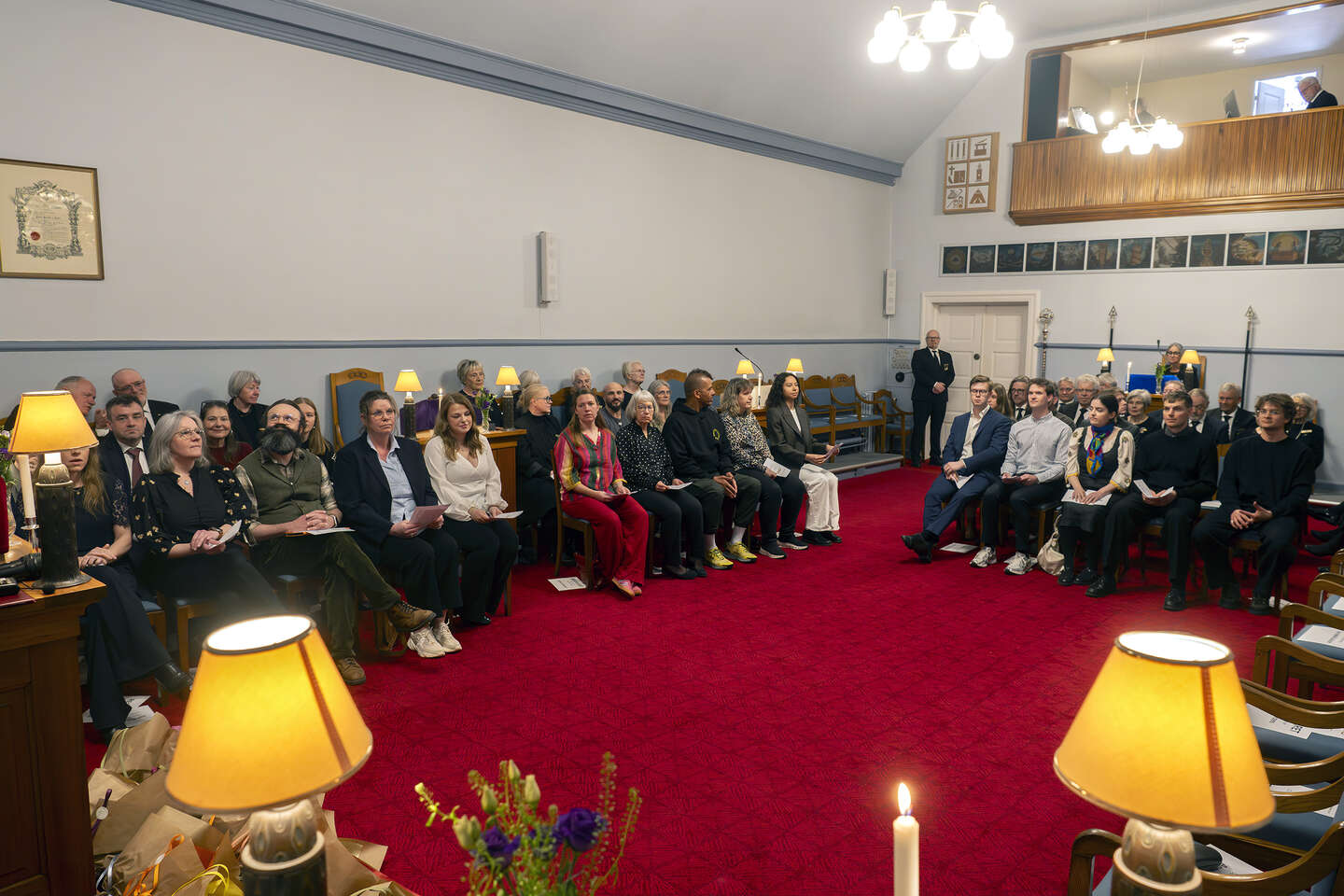 80 deltagere var med til den traditionsrige dag, som var planlagt af de tre bornholmske loger. Bygningen var festligt pyntet, og arrangementet blev indledt med fællessang.