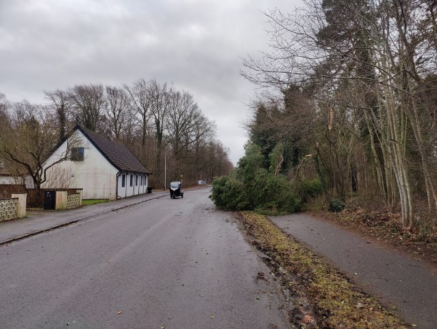 Et træ spærrede cykelstien i udkanten af Hasle lørdag formiddag. Foto: Jacob Jepsen