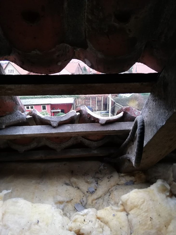 "Et lille fint hul i taget. Tre tegl blev blæst væk", skriver John Munch. Privatfoto