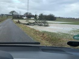 Et træ i det åbne landskab på Bukkevejen i Aakirkeby klarede ikke stormen. Foto: Dorte A. Kristoffersen