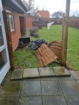 I Helligpeder strejfede et væltet træ dette hus. Foto: Kristoffer Gravgaard
