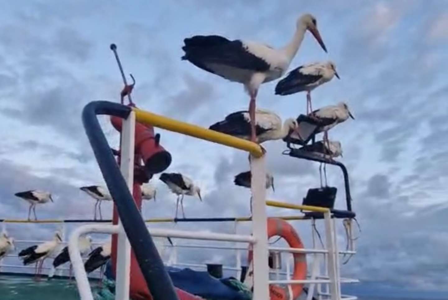 Se videoen: 40 storke i usædvanlig nødlanding på skib