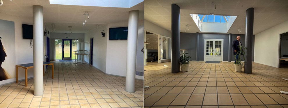Han glæder sig også over, at den store indgangsportal er blevet halveret i størrelse, da det var døde kvadratmeter, som ikke blev brugt til andet end en mellemgang.