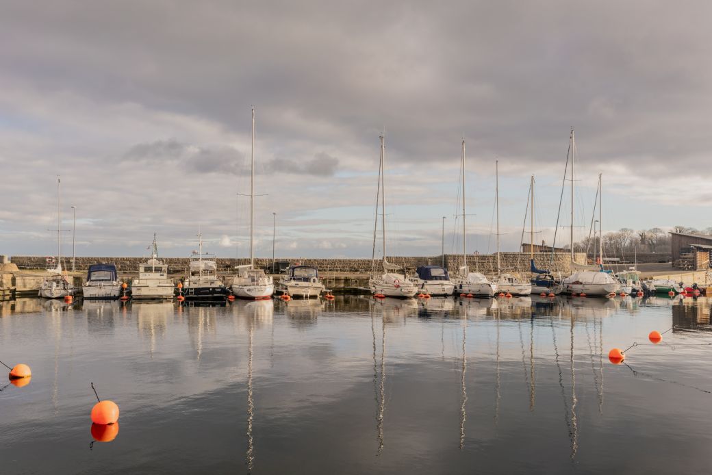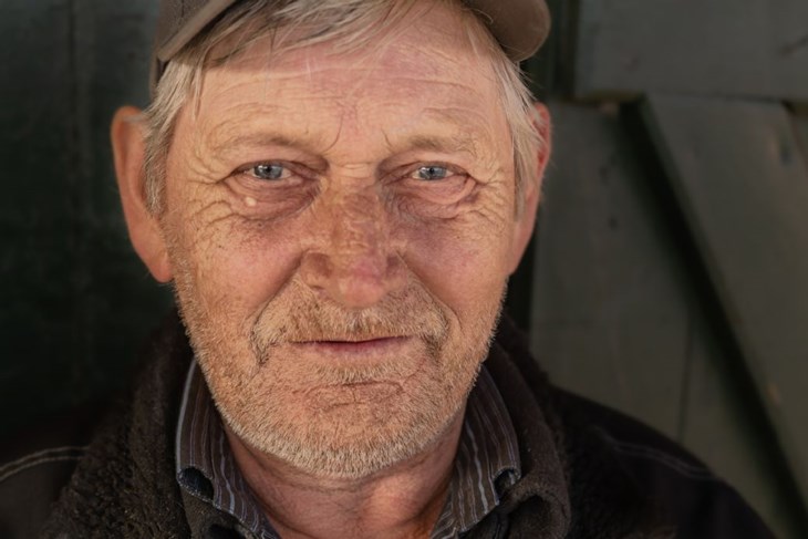 Han sidder sammen med to venner på en grøn bænk på havnen i Svaneke. Mellem dem står en kold sixpack. Duggen fra køleskabet sidder stadig på den grønne plastik.