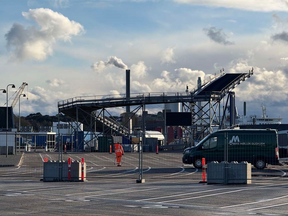 – Vi trækker rigtig meget på erfaringerne fra Aarhus, fordi vi, da vi flyttede ud i den nye havn, fik nye opmarchbaner. Det er noget af det, der har lært os, at når vi har et tilstrækkeligt stort areal og tilstrækkeligt mange baner at fordele lasten rigtigt på, så får vi en mere flydende lasteproces. Det betyder, at vi lige nu laster meget hurtigere i Aarhus, end vi gør i Rønne, siger Jesper Maack, der dog understreger, at det ikke kun er opmarcharealerne, der er forklaringen på det.