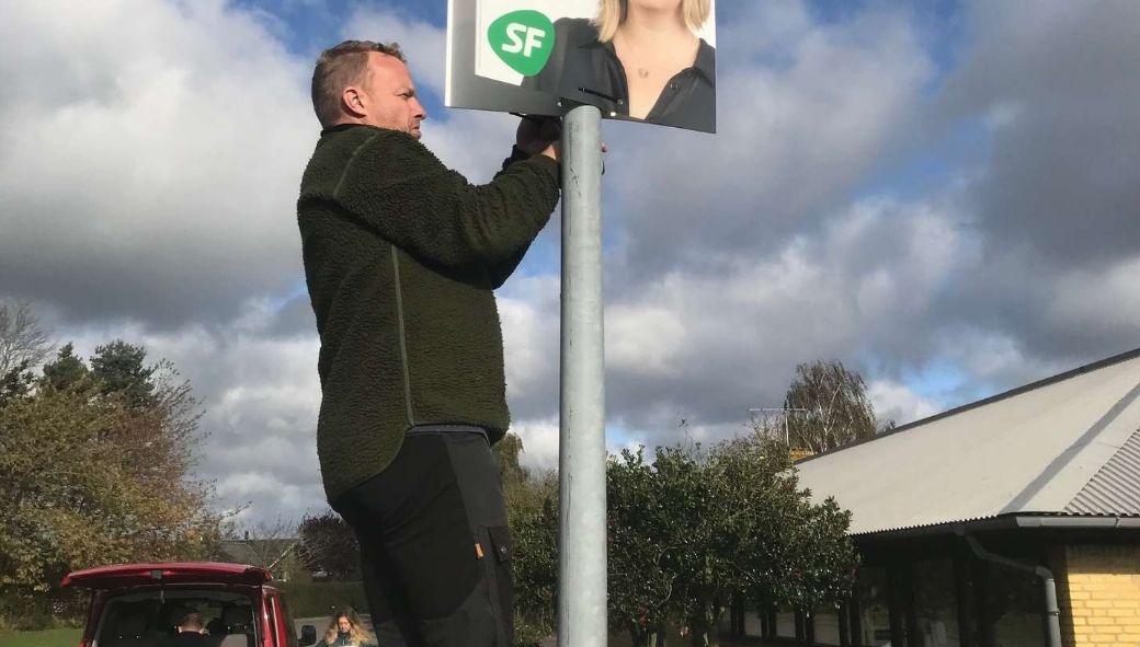 Bornholm står stærkt, når vi står sammen, også på stigen, når plakaterne skal op at hænge. Foto: Kjeld Lundbæk