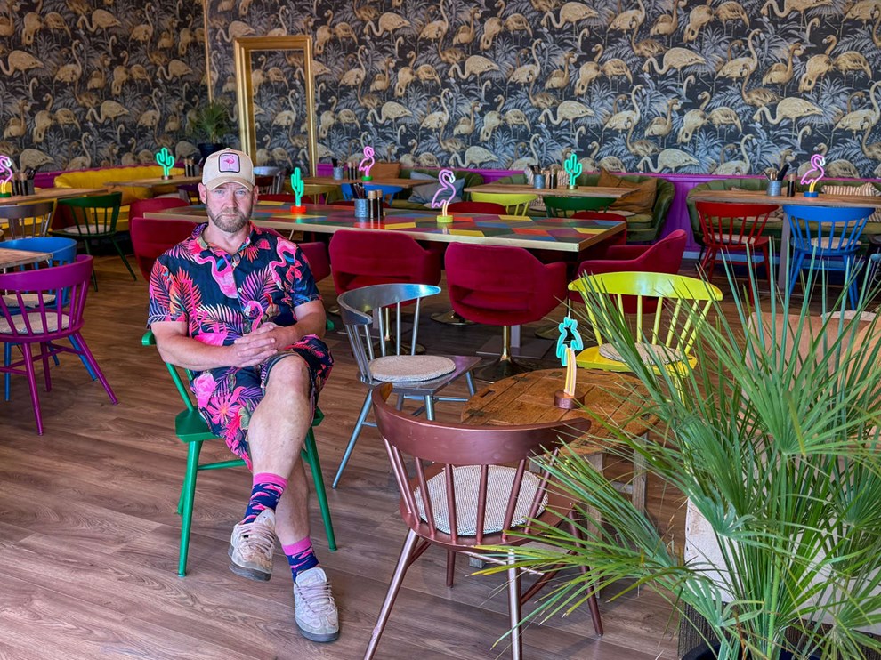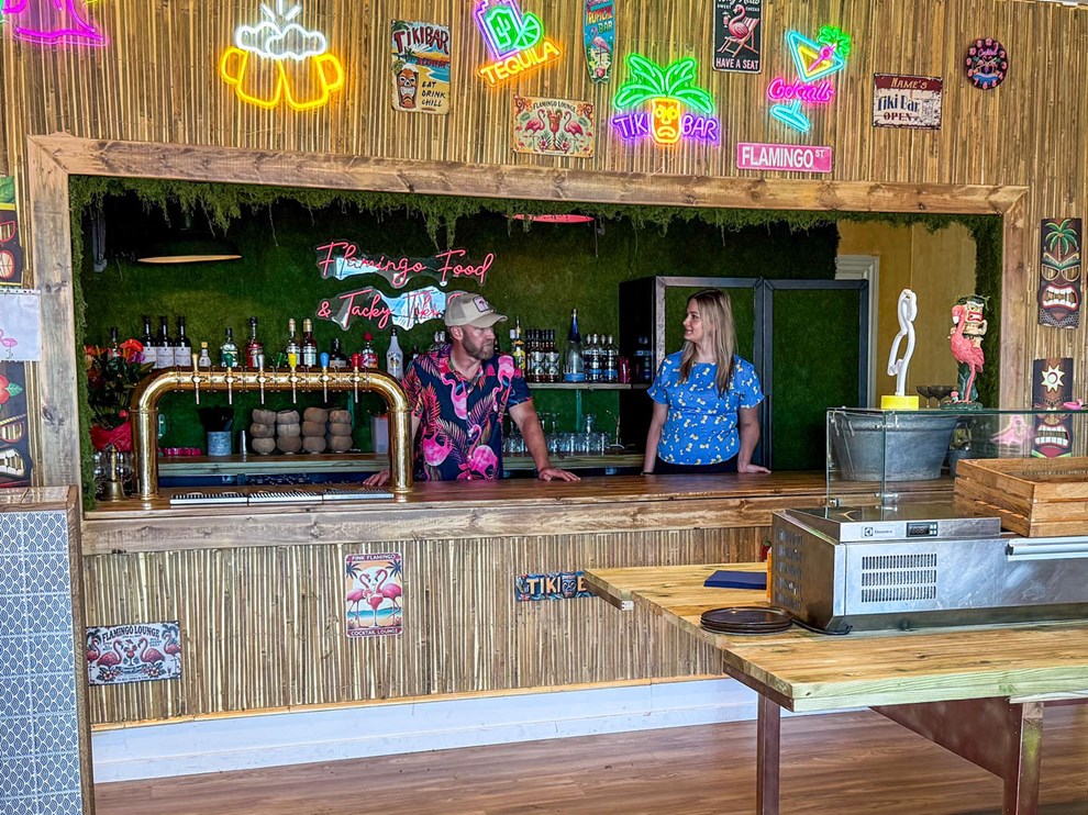 Hvis man er glad for hvide vægge og afdæmpede nuancer, så drejer man formentlig ganske hurtigt om på hælen og forlader Dennis Daners nyeste påfund; en restaurant som lyder det mundrette navn "Flamingo Food og Tacky Tiki Bar".