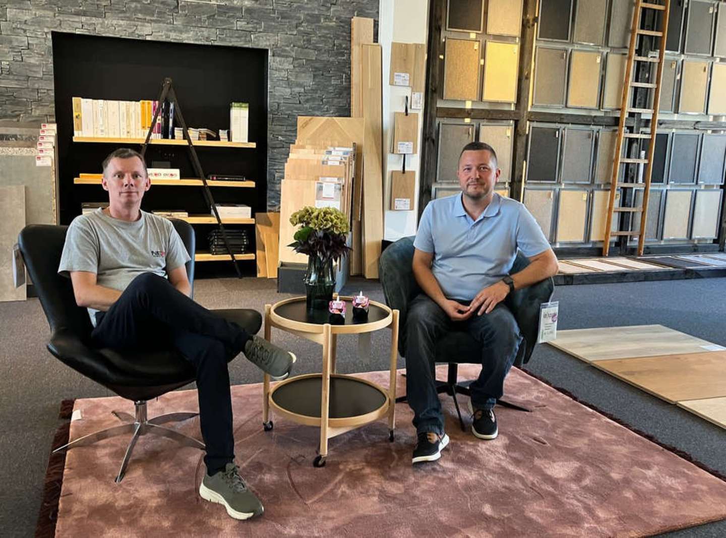Thomas Nimb blev i 2023 eneejer af Nexø Tæpper & Vinyl, men nu har Heino Kjær-Pedersen (th) købt sig ind og er blevet medejer. Arkivfoto: Sarah Thun Kristensen