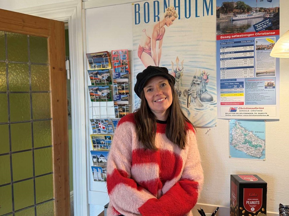 – Bygningen er vokset på os i løbet af sommeren. Næsgaarden er hyggelig, men man bukker sig, når man skal gennem dørene. Her er der højt til loftet. Og så bliver det godt for mig at komme lidt ud af Allinge. Jeg er blevet rigtig bornholmer i løbet af de syv år, vi har været her. Jeg synes jo også der er langt til Rønne nu, siger hun.
