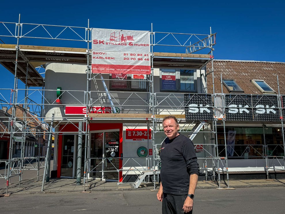 Tidende kunne i starten af maj berette om, hvordan Spar-købmanden var begyndt på det store projekt, hvor den afskallede hvide facade skulle males gul og det gamle tag erstattes af et nyt. Siden da har alle knoklet for at få projektet i mål.