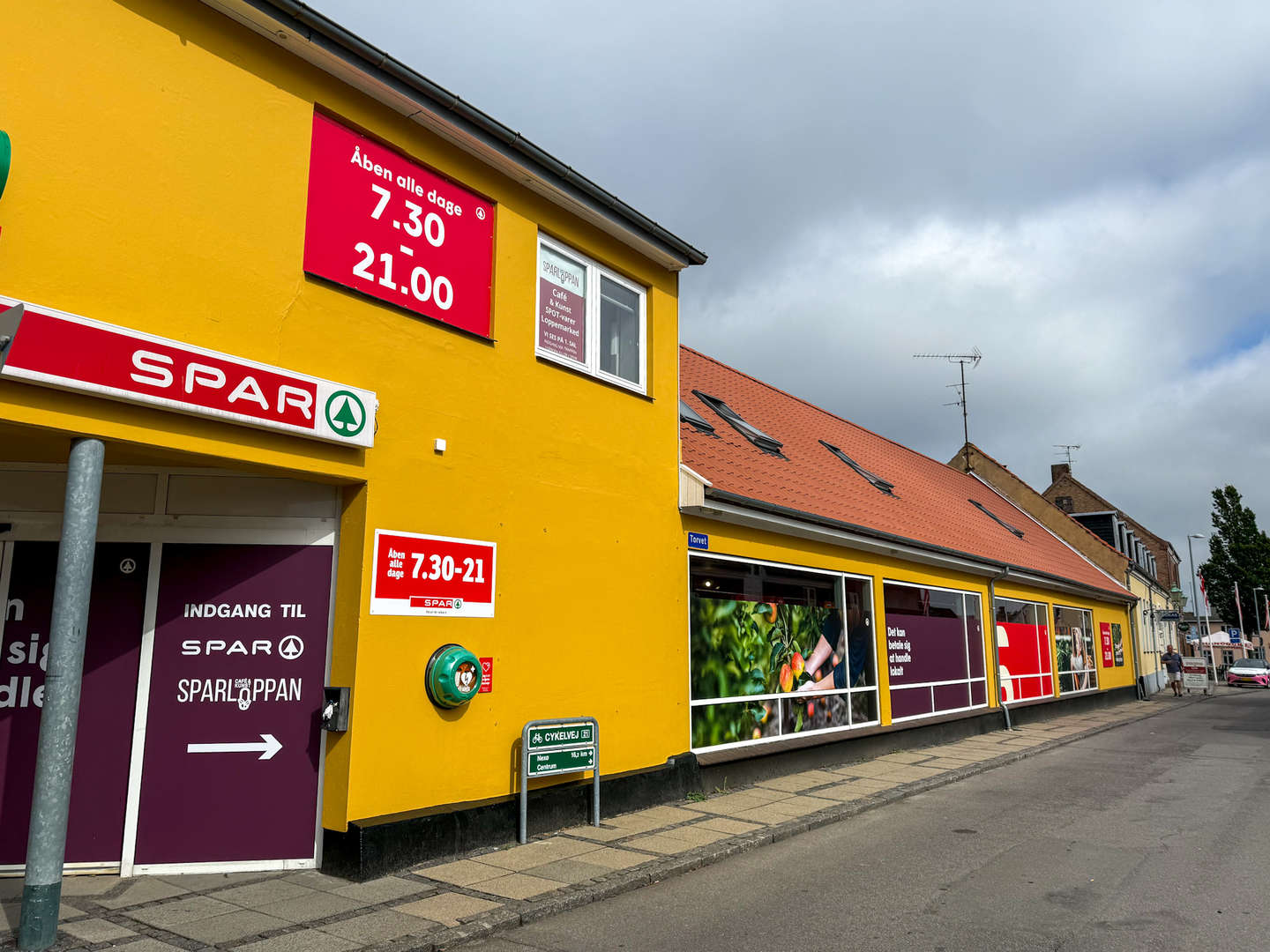 Der er ikke noget at tage fejl af, når man kører igennem Aakirkeby. Her stråler Spar-købmanden nærmest om kap med solen - nymalet og med nyt tag.