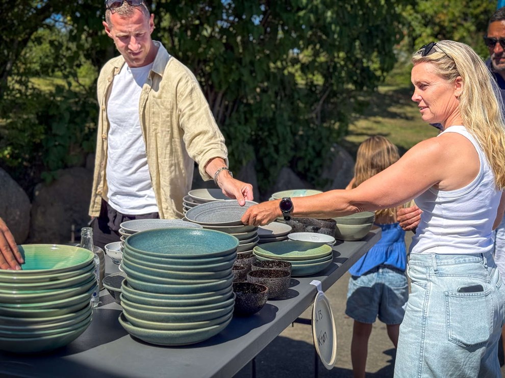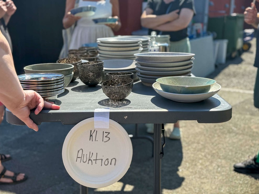 På auktionen kunne man blandt andet købe lokaltlavet keramik. Foto: Jesper Gynther