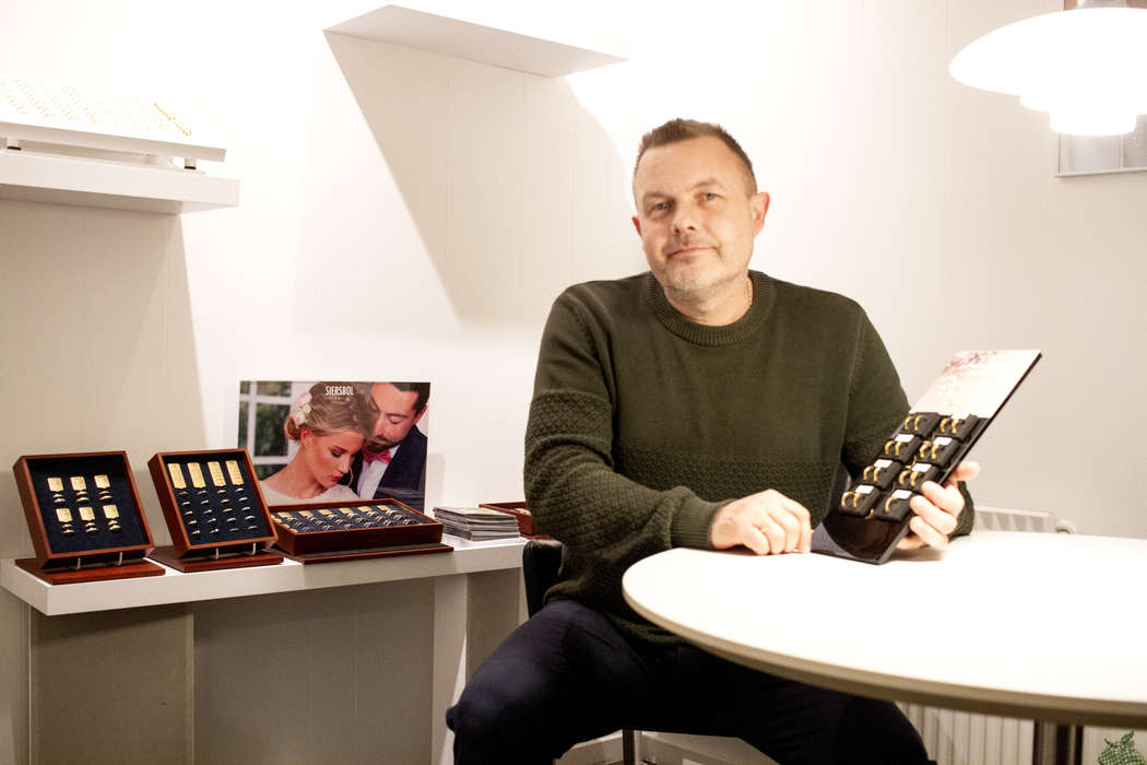 – KL Guld & Sølvs DNA har altid været en god service, og det kommer du rigtig langt med, smiler guldsmeden, da han har vist ned i butikkens anden ende, hvor der endnu er stille. Her er der udover smykker i montre også en væg fyldt med pokaler i forskellige størrelser.