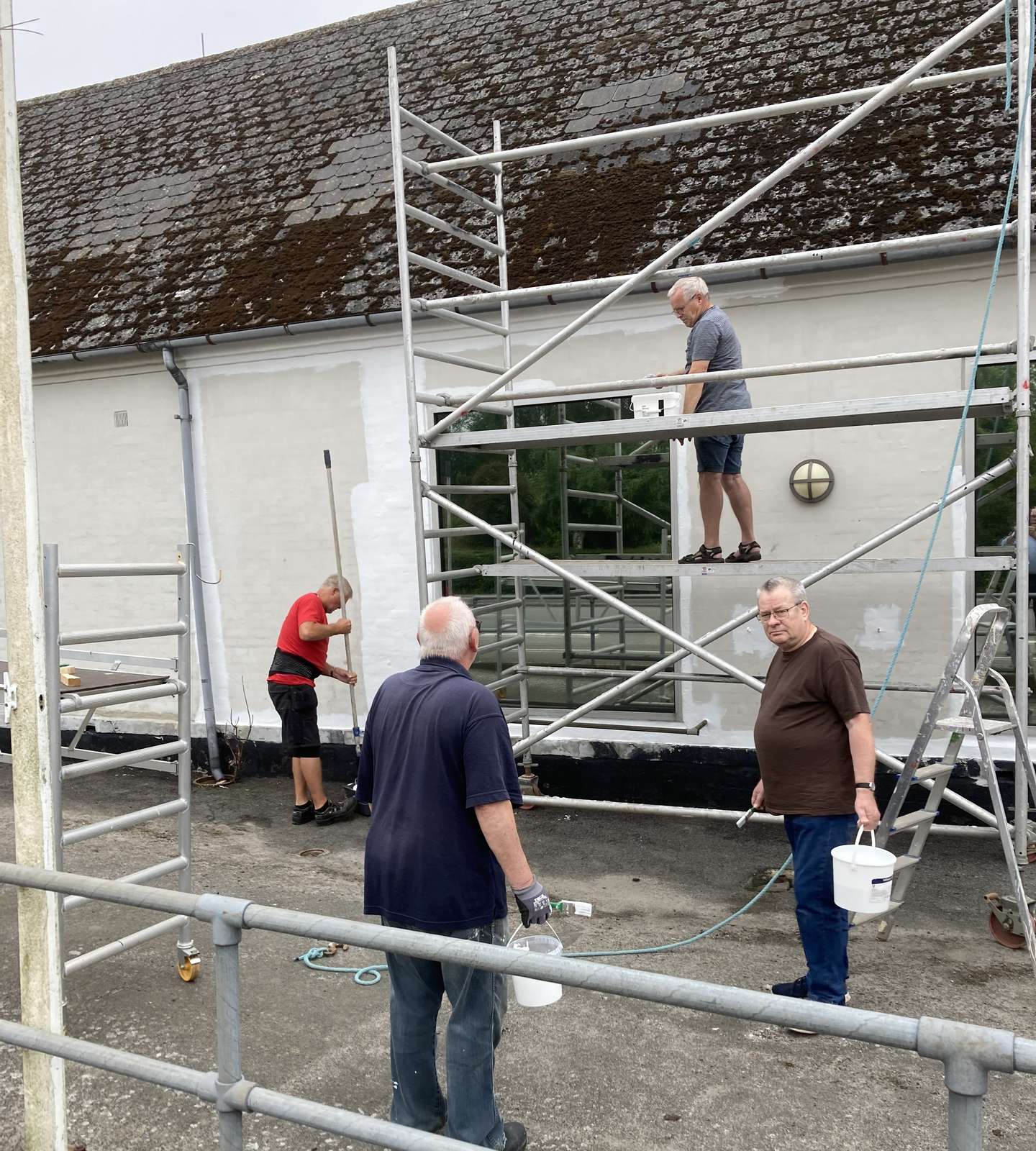 Nu afventer man at vejret tillader, at man maler facaden anden gang, og at den sidste mur ud mod gårdspladsen får første lag hvid maling. Og så går man videre på to-do-listen. I et netop udsendt nyhedsbrev fortæller bestyrelsen, at man efter planen tager fat på istandsættelsen indendørs, når det udvendige er klaret.