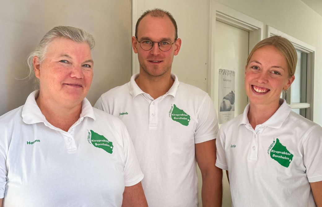 Hanne Nielsen, Jakob Degn og Julie Damgaard tager imod masser af patienter på Møbelfabrikken i Nexø. Foto: Sarah Thun Kristensen