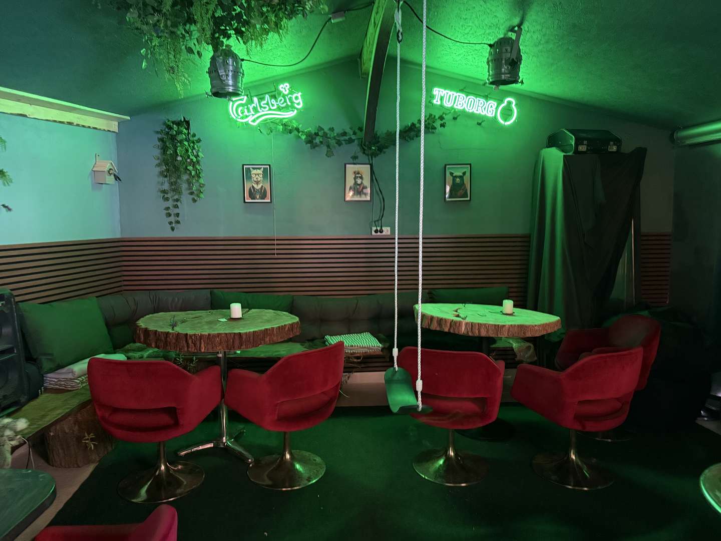 Det grønne sidelokale i Sofie's Garage er velegnet til hygge og filmaftener. Foto: Anette Vestergaard