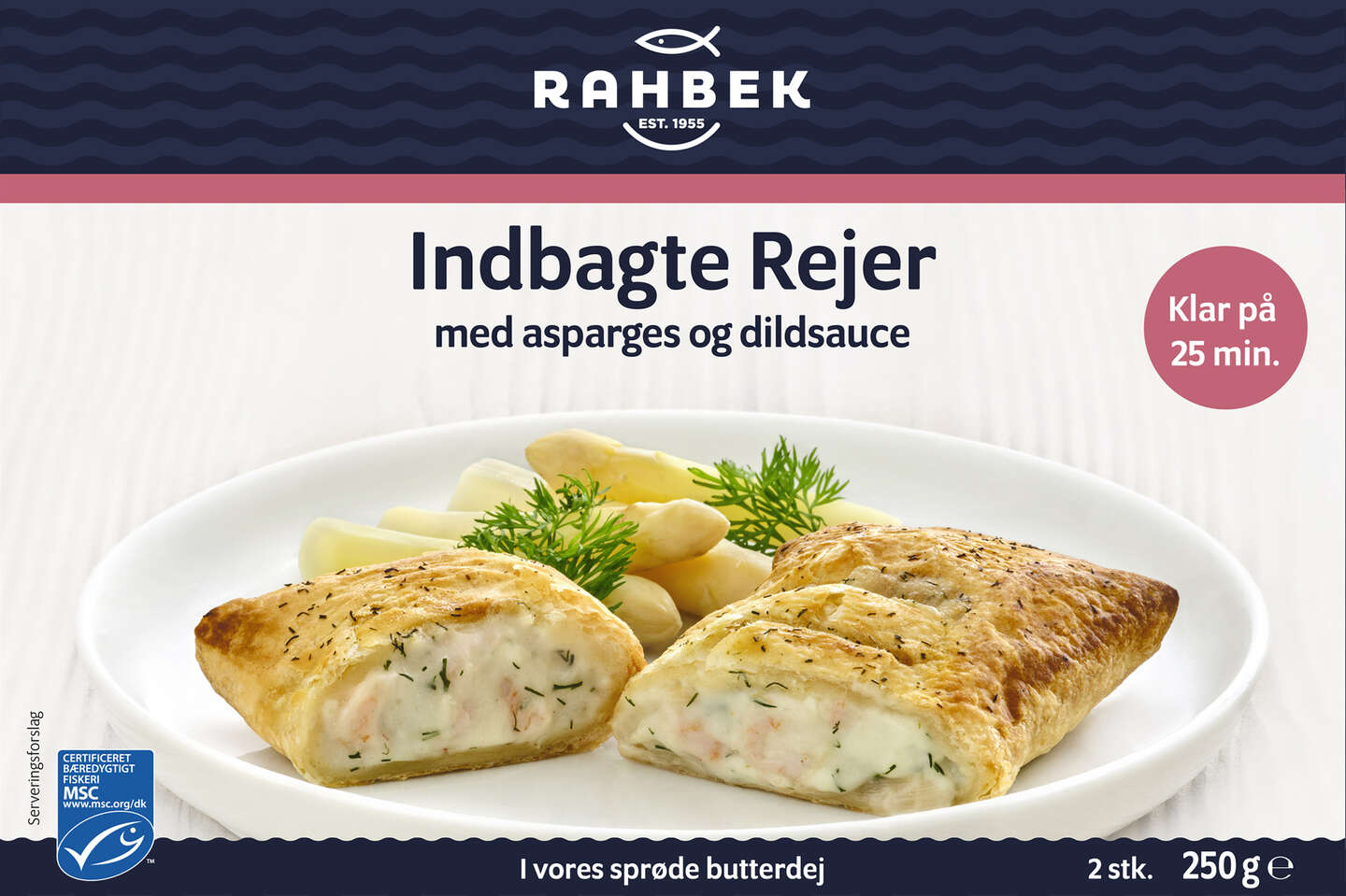 Produktet hedder Rahbek Indbagte Rejer og er pakket i en forkert emballage. I stedet for indbagte rejer er der indbagt laks med julienne-sauce i pakken. Produktet indeholder derfor fisk, som ikke fremgår af produktets mærkning. Har man allergi over for fisk, frarådes man at spise produktet.