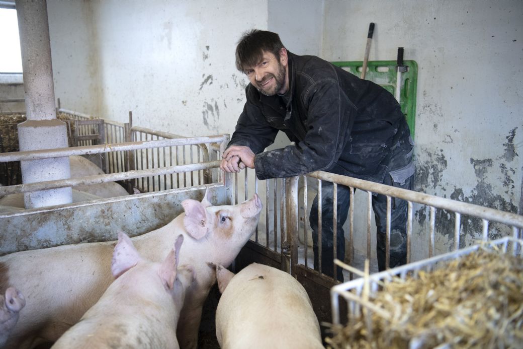 Jens Brandt opdrætter Bornholmergrise på Lundegård. Foto: Jens-Erik Larsen