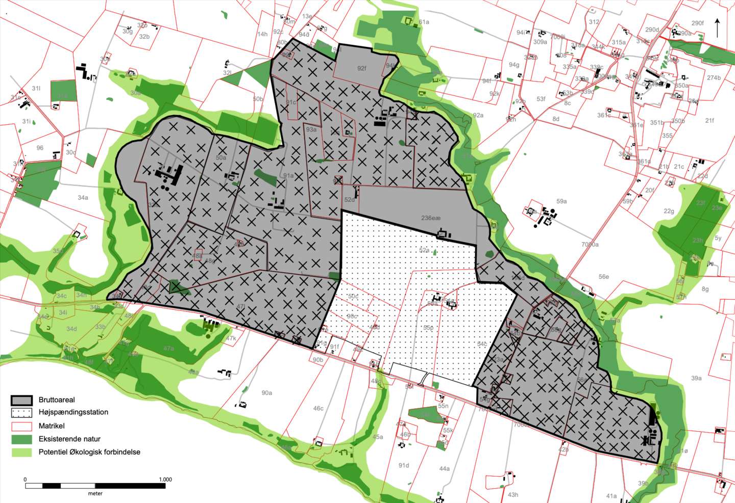 Michael Ellermann har tegnet et kryds på de matrikler, hvor lodsejeren har skrevet under på, at jorden ikke er til salg. Grafik: Michael Ellermann