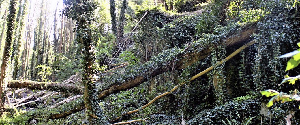 Elmetræerne i dalen er ramt af elmesyge. Døde træer ligger væltede på kryds og tværs, andre er knækkede som tændstikker. Der er vedbend overalt, også på de knækkede træer der næsten ligner dekorationer. Træer der er faldet ned over stien er skåret op, så man kan passere. De mange nedfaldne træer får dalen til at ligne en urskov.