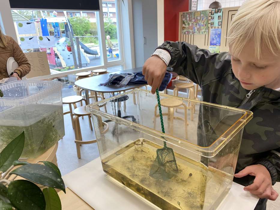 Samtidig med at vi har fulgt haletudsernes udvikling til små frøer, har vi snakket meget om frøer, blandt andet om hvad de spiser og hvem, der spiser frøer. Vi har bagt Kaj-boller, og vi har også lavet forskellige kreationer, eksempelvis "wc rullefrøer" og "udviklings snore".