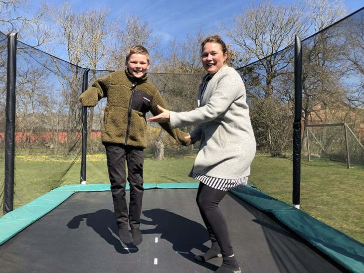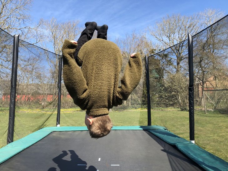 10-årige Linus er en habil springgymnast, som uden problemer laver saltomortaler på familiens trampolin. Her er han i sit es. Det har han imidlertid indtil videre ikke været på bornholmske skoler. Foto: Niels Ebdrup
