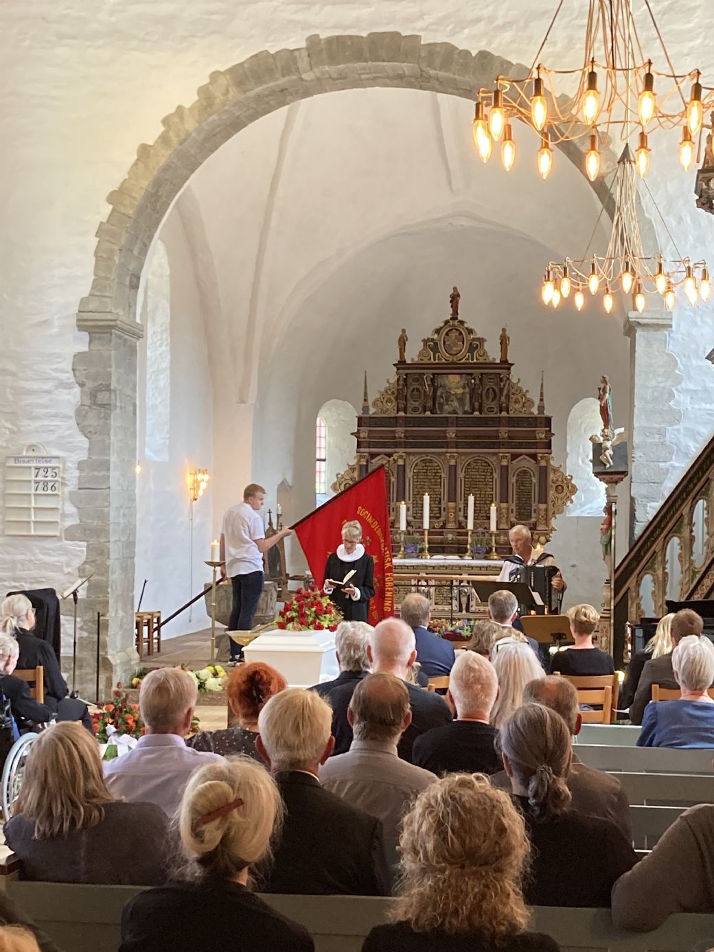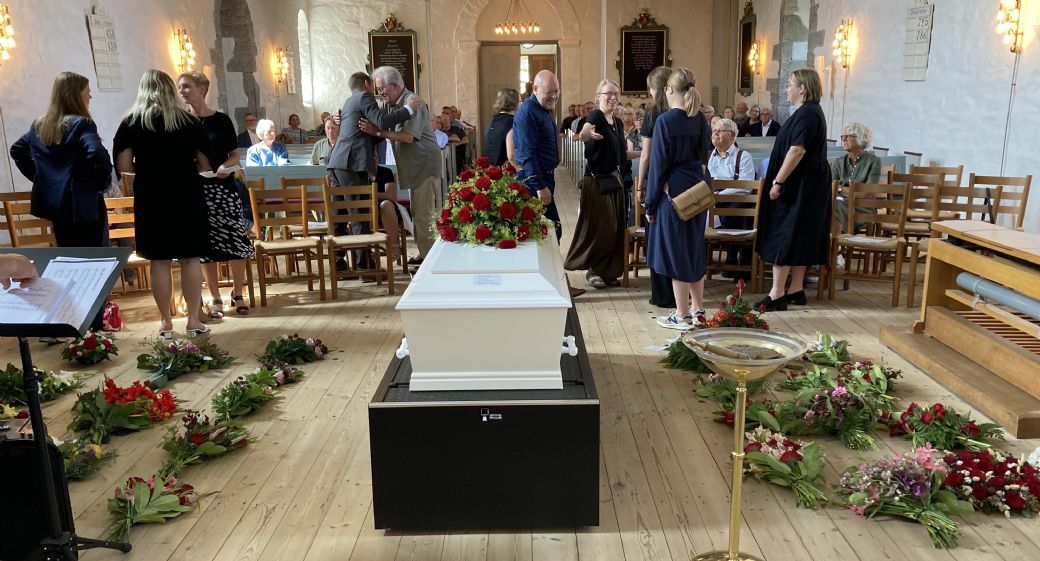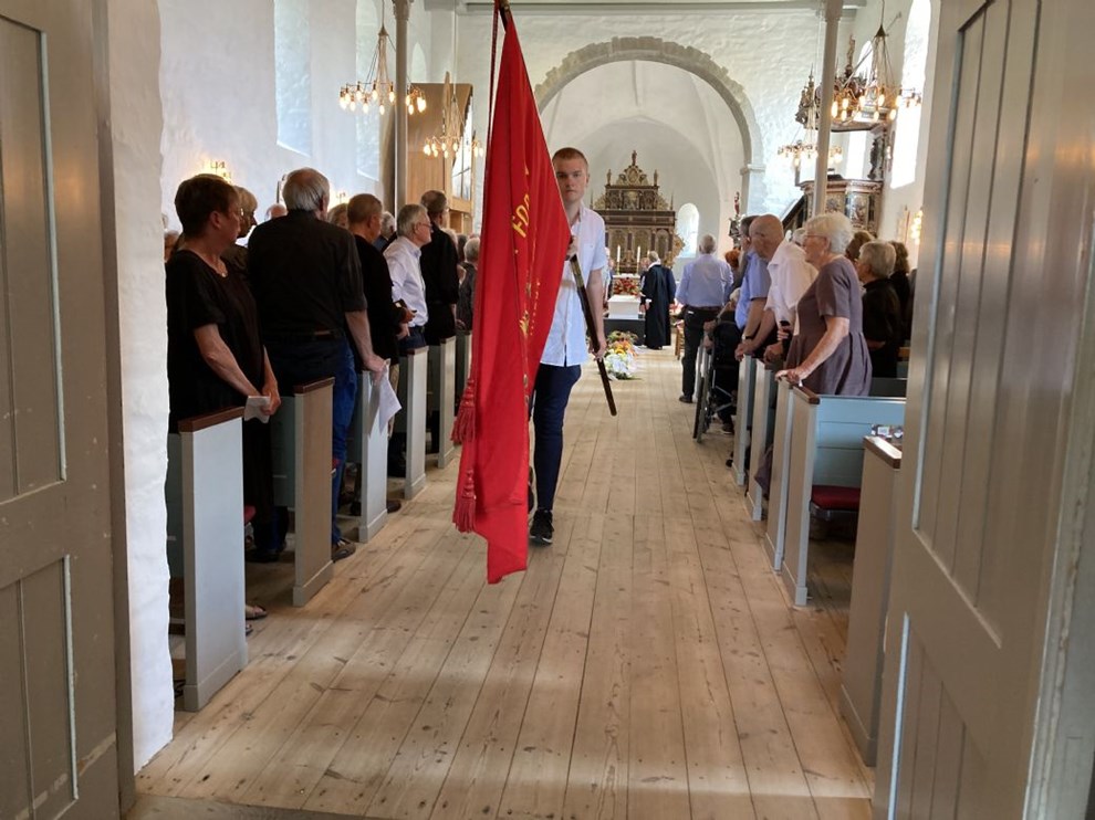Og så var han socialdemokrat om en hals, hvilket også afspejlede sig i Aa Kirke torsdag eftermiddag. Der lå røde roser på den hvide kiste og på gulvet, og den røde fane vajede over hele den kirkelige handling – godt hjulpet af fanebærer og DSU'er Oliver Lund – som en diskret påmindelse om, at Søren Wolff altså var mere socialdemokrat, end han var hellig.