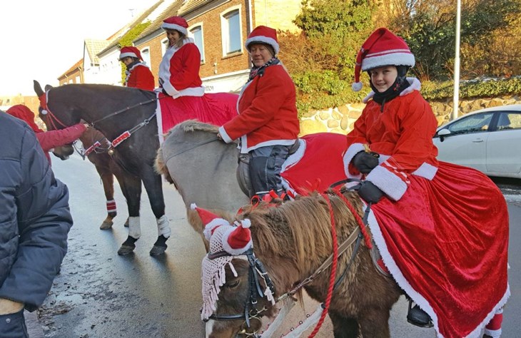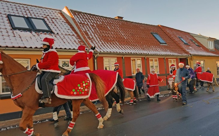 De mange ryttere red, selvfølgelig iført juledragter, gennem byen og gjorde stop ved de handlende i byen. I forbindelse med rytteroptoget blev årets vindere af tegnekonkurrencen for børn også kåret i Hasle-Info på Rådhuset.