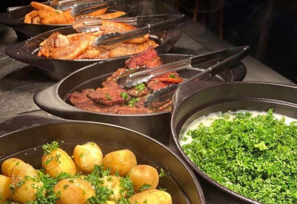 – Vi er glade og overraskede over, hvor stor en succes vores "onsdags stegt flæsk buffet" er blevet. På en almindelig onsdag laver vi mere end 20 kilo stegt flæsk og koger godt fem kilo æblegrød, fortæller Thorbjørn Rafn.