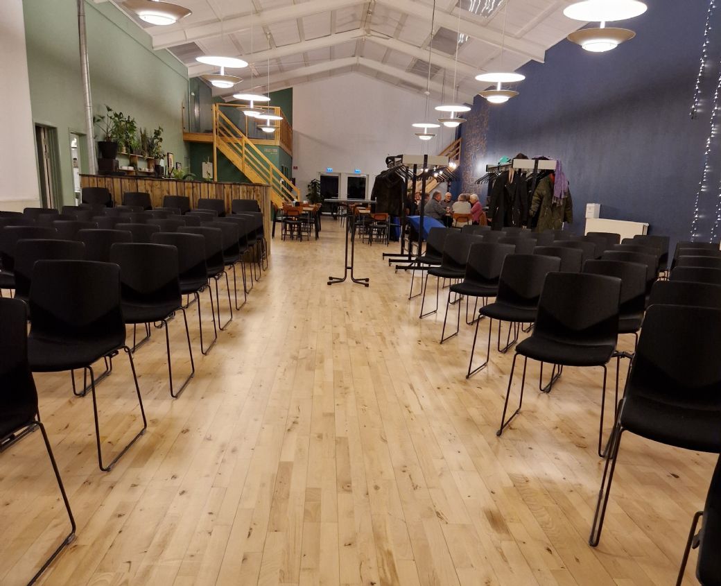 – Kirkesalen har fået den helt store omgang. Rummet er det samme, men alle flader er nye – der er nymalet, gulvet er slebet, der er kommet nyt loft og nye møbler. Håndværkerne var færdige sidst i november, og vi begyndte at bruge kirkesalen i december. Nu vil vi holde en indvielse, hvor vi inviterer naboer, håndværkere og alle interesserede ind og se resultatet, siger Michael Kaarby.