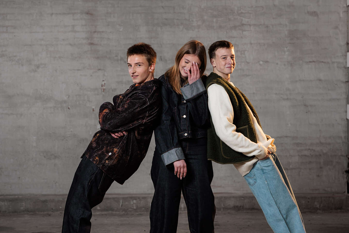 Albert Oakman, Maj Linn Mattsson og Thomas James går i klasse sammen på Svaneke Friskole, og nu skal de også spille sammen i Nexø Revyen. Foto: Kristoffer Linus.