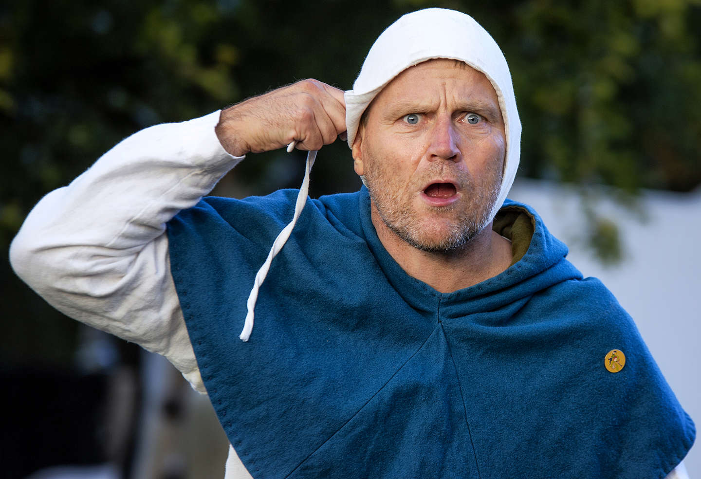 Klokken 14 søndag er det Steiner Steinmetz' alter ego Mikkel Langbue, der indtager scenen for at fortælle om 100-årskrigen, og pilene suser gennem luften, når han tager publikum med til det store middelalderslag, fortæller administrator Mie Hjort fra Svanekegaarden.