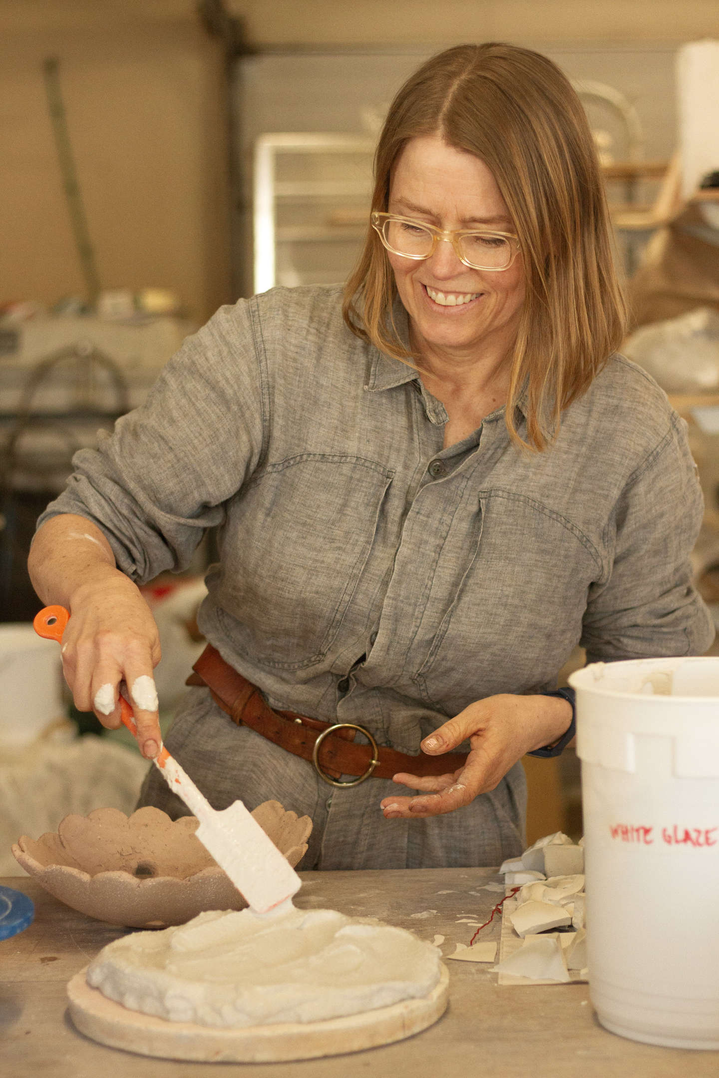 – Jeg kan huske, at det gjorde et stort indtryk på mig. For jeg syntes, det var helt vildt fedt, det de lavede. For eksempel husker jeg, at Haico Nietzshe lavede t-shirts og skjorter og lædertasker i ler. Men det var lavet så godt, at det rent faktisk lignede stof og læder, fortæller keramikeren, som også selv holder af at lege med illusionen i sine værker.