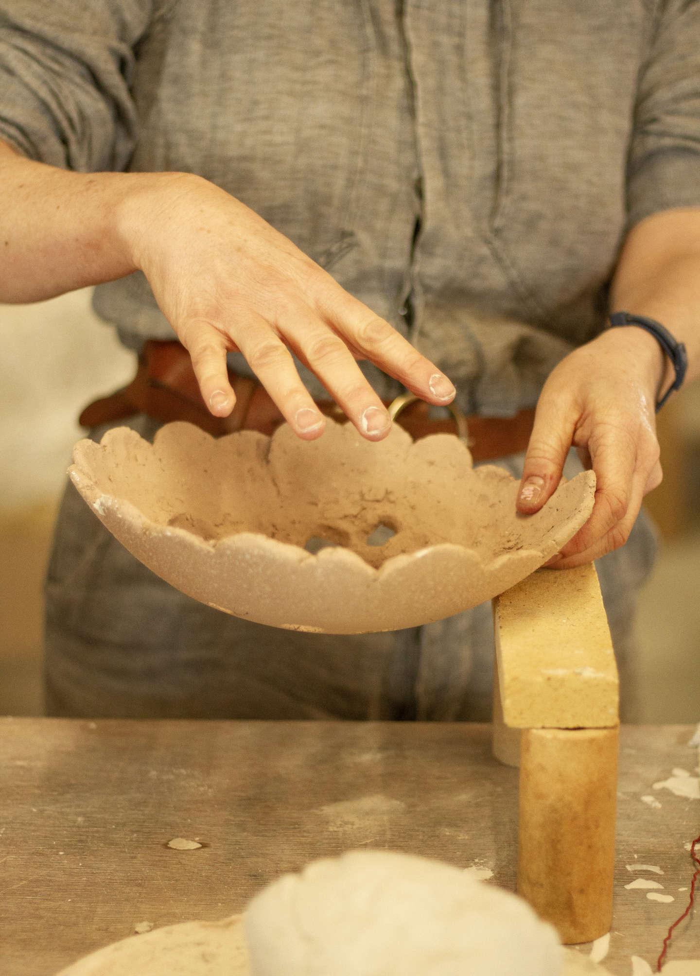 Hvad ler kunne blive til i kyndige hænder, oplevede hun også tidligt, når hendes mor tog hende med op til Kampeløkken i Allinge, som dengang var en kunsthåndværkerbutik med keramik af øens keramikere.